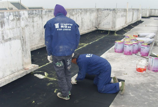 該項目需要維修的屋面防水維修改造工程,總共49棟。其中南苑包括單身公寓30棟,三區(qū)包括探親樓及幼兒園19棟。項目不僅要求防水,還要保溫。由于改造工程規(guī)模較大,施工難度高,且工期短,經(jīng)青龍公司技術(shù)工程師多次實地綜合勘察,最后選用了青龍RJS208反應(yīng)性聚合物水泥涂料和高分子防水卷材復(fù)合防水工法,在處理好基層施工面上涂刷RJS208(CQ113)成膜,并以此為粘合劑,直接粘貼高分子卷材,并以防水隔熱磚代替原有的方階磚。經(jīng)過青龍公司精心施工,最后如期完成。