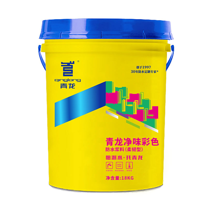 青龍凈味彩色防水漿料(柔韌型)是采用高分子聚合物膠液為主要原料,配以多種助劑而成的合成建筑防水膠乳。