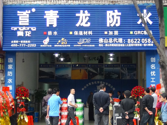 5月4日,伴隨著喜慶的民樂(lè),熱鬧的鑼鼓,位于佛山市南海區(qū)桂城東二大道南興裝飾城一樓A8商鋪的青龍防水佛山總代理專賣店隆重開業(yè)。經(jīng)過(guò)精心的裝修,藍(lán)底白字的“青龍防水”門牌顯得格外顯眼,而店前的花籃也為開業(yè)慶典增添了節(jié)日的氣氛。青龍建材集團(tuán)董事長(zhǎng)宋敦清、廣東省區(qū)域服務(wù)人員,以及一百多位防水業(yè)界嘉賓到場(chǎng)祝賀。