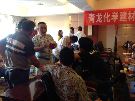 會(huì)議結(jié)束后,針對(duì)大家提出的“怎樣的材料是綠色環(huán)保的”,“怎樣的施工工藝是綠色環(huán)保的”,“綠色施工在PCM反應(yīng)粘新品上有什么樣的體現(xiàn)”等問題,徐總一一做出詳細(xì)的解答,并與大家做了詳細(xì)交流。青龍公司向與會(huì)人員贈(zèng)送CQ101水固化聚氨酯防水涂料,并對(duì)照GRC樣品進(jìn)行詳細(xì)解說,交流會(huì)現(xiàn)場(chǎng)確定了涼山州五縣代理商。