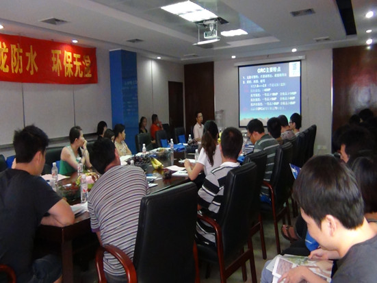 青龍集團(tuán)防水保溫技術(shù)總工程師徐新生深入地剖析了新產(chǎn)品青龍牌新的型反應(yīng)交叉膜自粘卷材,并詳細(xì)講解了青龍牌HG203防水密封涂料,EVB高強(qiáng)保溫隔熱板等產(chǎn)品的特點(diǎn)及應(yīng)用,幫助與會者更好地了解青龍建材的主推產(chǎn)品,同時(shí)也得到技術(shù)人員的充分肯定與高度贊揚(yáng)。