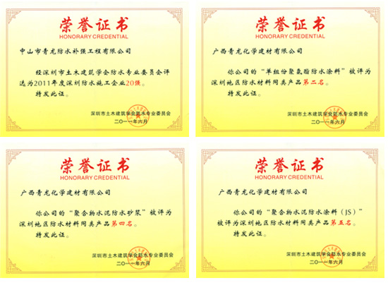 會(huì)上,中國(guó)建筑防水協(xié)會(huì)會(huì)長(zhǎng)朱冬青,深圳市住房和建設(shè)局、市政秘書(shū)處、深圳土木協(xié)會(huì)等相關(guān)領(lǐng)導(dǎo)分別為大會(huì)致辭,隨后專(zhuān)家委員會(huì)給青龍等企業(yè)頒發(fā)了獎(jiǎng)牌和榮譽(yù)證書(shū),青龍防水補(bǔ)強(qiáng)憑借好的的工程業(yè)績(jī)與施工經(jīng)驗(yàn)獲得"深圳防水施工企業(yè)20強(qiáng)",憑借優(yōu)異的產(chǎn)品品質(zhì),相關(guān)產(chǎn)品分別獲得"隔熱保溫防水一體化材料(系統(tǒng))"被評(píng)為深圳地區(qū)防水材料同類(lèi)產(chǎn)品一名,單組份聚氨酯,聚合物水泥防水砂漿,聚合物防水水泥涂料(JS)分別獲得深圳地區(qū)同類(lèi)產(chǎn)品第二名,第四名和第五名。