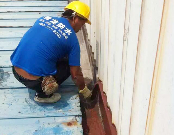青龍公司中山經(jīng)銷商張總成功承接了這一防水補(bǔ)漏工程。經(jīng)過(guò)實(shí)地仔細(xì)檢查,并經(jīng)與客戶詳細(xì)協(xié)商,之后敲定采用青龍公司CQ103丙烯酸酯好的彈性防水涂料和CQ104單組份濕固化純聚氨酯防水涂料的組合補(bǔ)漏方案。青龍CQ103丙烯酸酯防水涂料具有良好的耐老化、延伸性、粘結(jié)性、成膜性及耐高溫性,因此非常適合在鐵皮房屋頂作整體涂刷;而屋頂排水溝則采用CQ104單組份濕固化純聚氨酯防水涂料。