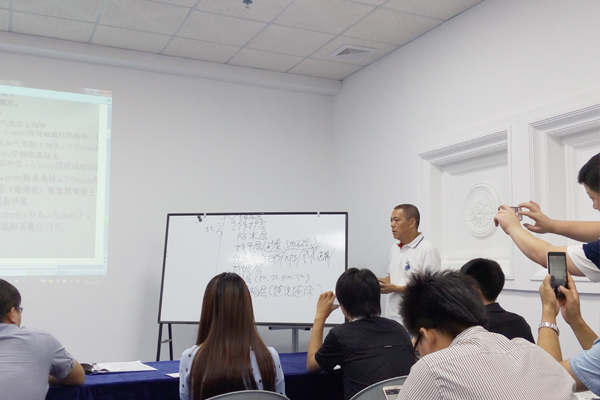會議的之后,為提升公司業(yè)務人員防水等專業(yè)水平,培養(yǎng)解決各種復雜防水難題的能力和自信心,公司董事長宋敦清先生親自言傳身教,以地下室底板、地下室頂板、地下室側(cè)墻、屋面等防水設計方案為參照,引導大家共同設計出最有效,最經(jīng)濟的防水保溫設計,鼓勵大家轉(zhuǎn)變觀念,靈活應用。宋總的講解讓大家受益匪淺,也深深理解了防水專業(yè)知識的重大意義。