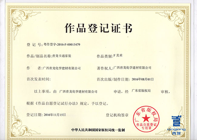 近日,青龍卡通家裝和工裝(粵作登字-2016-F-00015479和粵作登字-2016-F-00015480)順利通過廣東省版權(quán)局審核,予以登記。自2016年11月15日起,青龍卡通家裝/工裝設(shè)計,將受法律保護,版權(quán)所有,侵權(quán)必究。