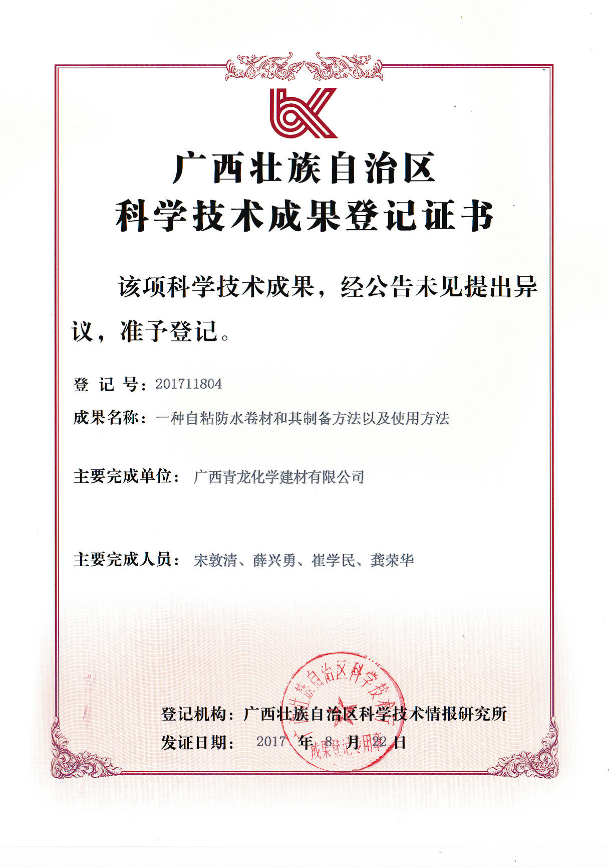 青龍建材七項科技成果,請君過目: