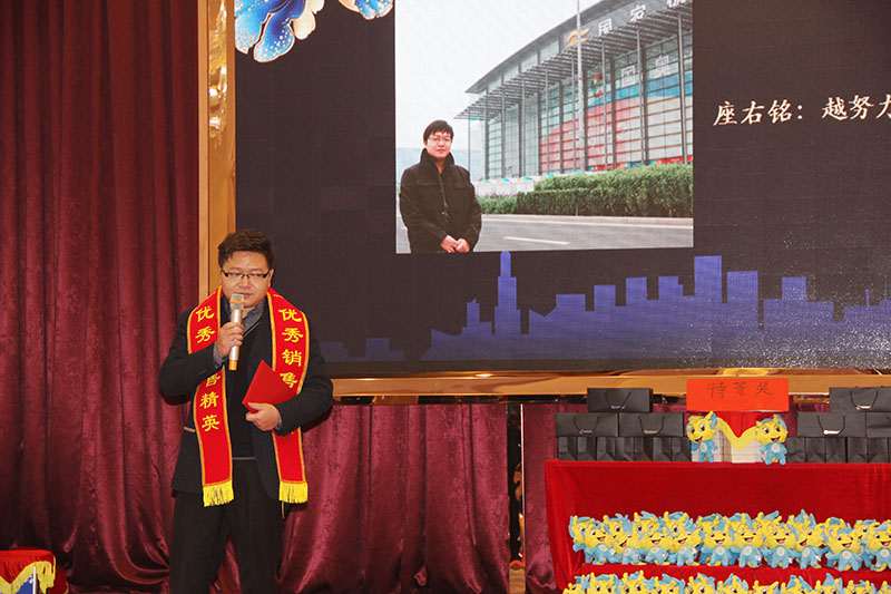 營銷總監(jiān)賀金龍先生領(lǐng)取"優(yōu)秀銷售精英"獎項時作了激昂慷慨的發(fā)言,向與會同事分享了自己的發(fā)展歷程,以及未來的發(fā)展方向和展望,鼓勵大家"越努力,越幸運(yùn)"再接再厲,勇創(chuàng)新高。公司也一定認(rèn)真評詁大家工作表現(xiàn),激勵不斷,提供更好的發(fā)展平臺和機(jī)遇。