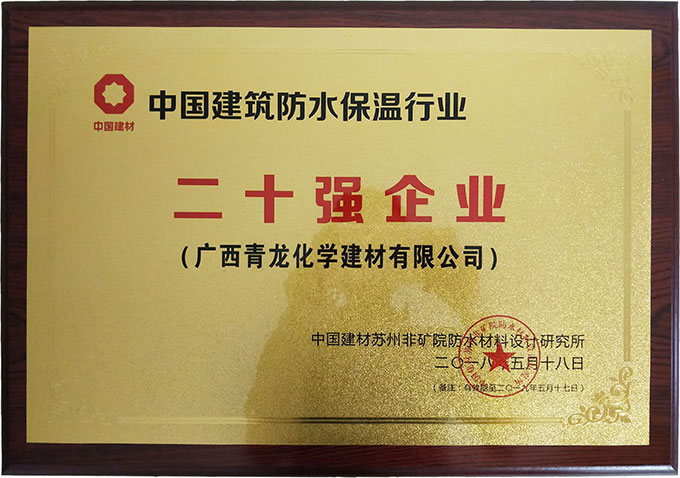 青龍榮獲"中國建筑防水保溫二十強(qiáng)企業(yè)"稱號(hào)