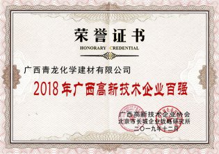 喜訊:青龍防水廣西公司被認定為廣西2019年高新技術(shù)企業(yè)百強