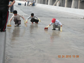2010年2月24日,公司領(lǐng)導(dǎo)和業(yè)務(wù)員一起到廣珠輕軌工地現(xiàn)場參觀實習。 工人用專業(yè)設(shè)備處理基面 打底漆