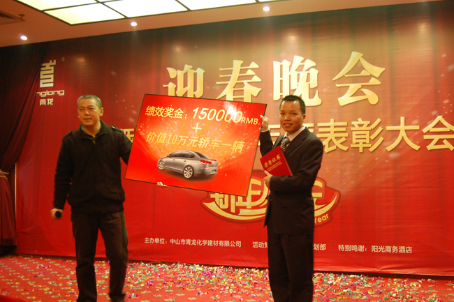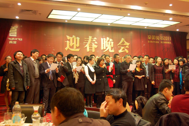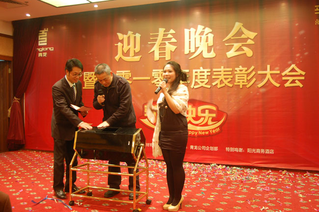 2011年1月14日,中山某大酒店四樓樓宴會廳張燈結彩,座無虛席,洋溢著濃濃的節(jié)日氣氛,青龍公司2011迎春晚會暨2010表彰總結大會在此隆重舉行,青龍公司總部、中山廠、東莞公司、廣州辦、深圳辦、惠州辦的員工代表、特約嘉賓及全體員工350余人出席了聯(lián)歡會。