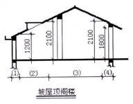 單(多)層建筑物的坡屋頂內(nèi)空間,當設(shè)計加以利用時,其凈高超過2.1m的部位應(yīng)計算全面積;凈高在1.2m至2.1m的部位應(yīng)計算1/2面積;凈高不足1.2m的部位不應(yīng)計算面積。設(shè)計不利用時不應(yīng)計算面積。這里我將這種算法簡稱為“凈高界限計算法”。凈高是指樓面或地面至上部樓板(屋面板)底或吊頂?shù)酌嬷g的垂直距離。如圖2:第(1)部分凈高<1.2m,不計算面積;第(2)、(4)部分1.2m≤凈高≤2.1m,計算1/2面積;第(3)部分凈高>2.1m,應(yīng)全部計算面積。