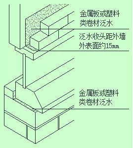 使用金屬或塑料類的材料作為泛水,不讓其進(jìn)入窗體;窗臺(tái)使用金屬板將雨擋在外面。