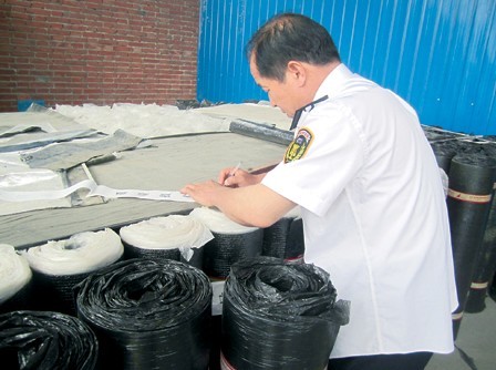 近日,質(zhì)檢總局執(zhí)法督查司根據(jù)全國建材市場秩序?qū)m椪尾侩H協(xié)調(diào)小組確定的工作重點,統(tǒng)一組織指揮河北、遼寧、山東等11省質(zhì)監(jiān)局開展了"質(zhì)檢利劍"防水卷材執(zhí)法打假集中行動,重點打擊制售假冒偽劣、無證生產(chǎn)防水卷材等違法行為。
